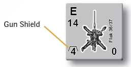 A Gun Shield provides extra protection to the inherent crew of the Gun, but only when attacked from within the Gun’s FFA, and only when the Gun is not moving. Guns with a Gun Shield ignore the first Casualty Point from AP fire, and when attacked by AT fire the Gun Shield provides a +1 cover modifier. A Gun Shield’s protection