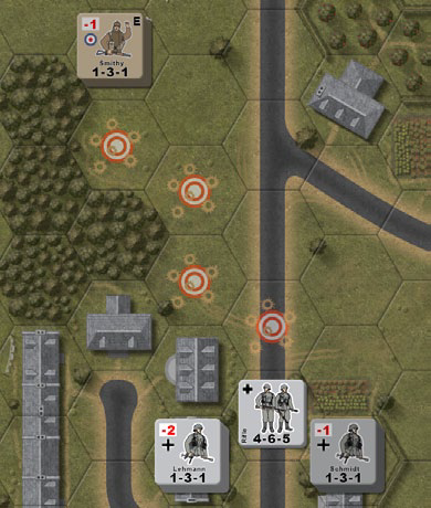 Opportunity Fire attacks that are conducted by an infantry unit with an MG support weapon will establish a fire lane. AFV and vehicle MGs cannot create fire lanes. The fire lane extends from the firing hex to the target hex. A Fire Lane is marked by a series of markers in each hex along the original LOS, including the target hex, but not the firing unit’s hex. Infantry, Gun, or unarmored vehicle units that enter a fire lane hex are immediately attacked using the 1-4 row of the AP Combat Table. No combat or cover modifiers apply, as units are considered to be entering an established fire lane. Units already occupying a fire lane when it is established are not affected; a unit is only affected when entering a fire lane hex. Fire Lane markers are removed at the end of the current Move Phase.