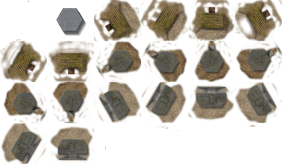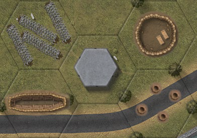 Fortifications and entrenchments are improved defensive positions constructed to provide additional cover for defending units, or to hinder enemy movement (for example, barbed wire). Fortifications are placed in hexes specified by the scenario in place. Fortifications and entrenchments do not affect LOS.