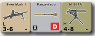 and anti-tank weapons (e.g. bazookas, Panzerschrecks). Heavy (H) support weapons include medium and heavy machine guns. Expendable (X) support weapons include Panzerfausts, grenades, and satchel charges.