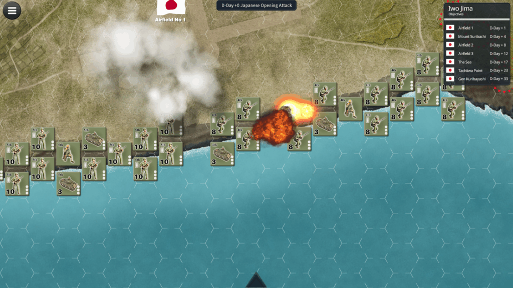 Battle for Iwo Jima simulates the Invasion and desperate fighting for the island from Feb 19th, 1945, to March 26th, 1945. You take command of the US Marines and will test your ability to do better than those brave Marines did back in 1945.