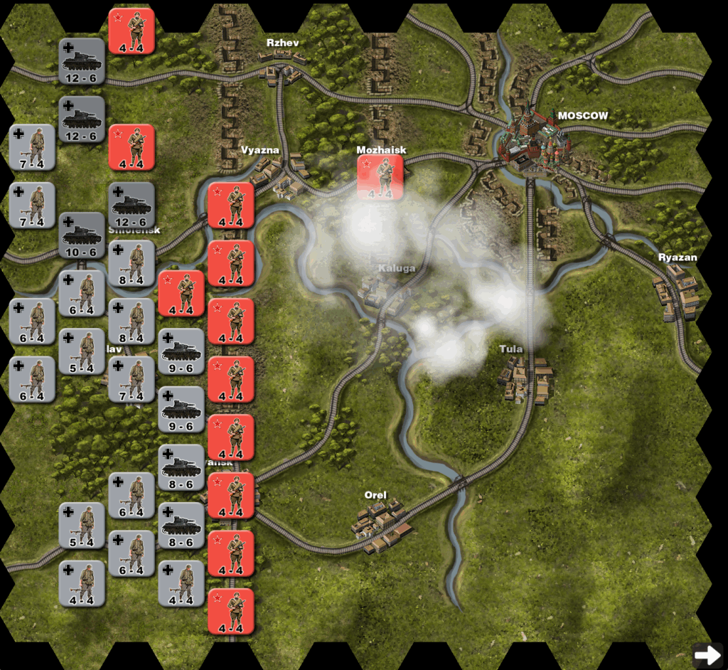 This is a solo player wargame in which you get to play both as the Russians desperately defending their capital and as the Germans equally desperate to capture it. Whoever holds Moscow at the end of the wargame wins.